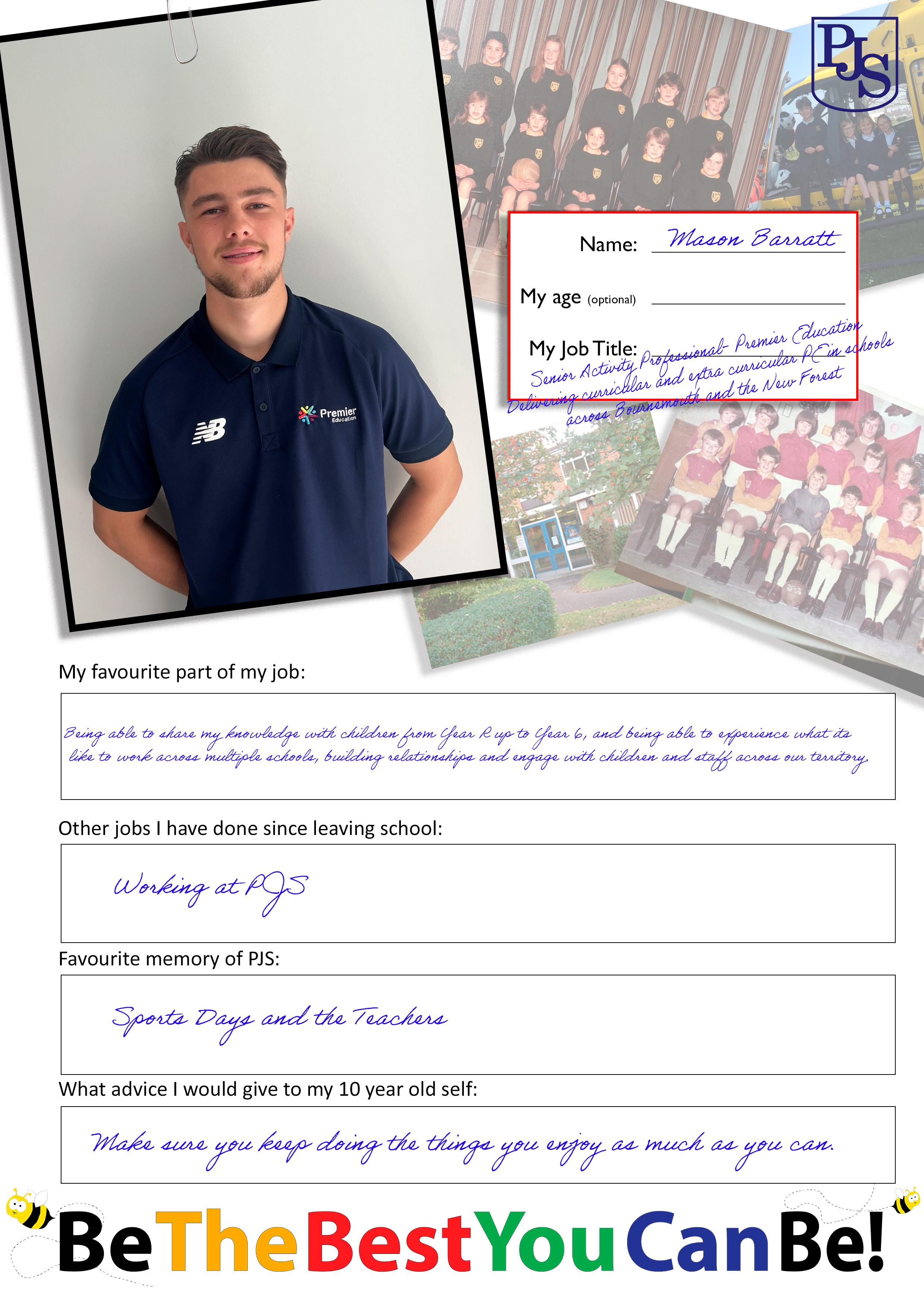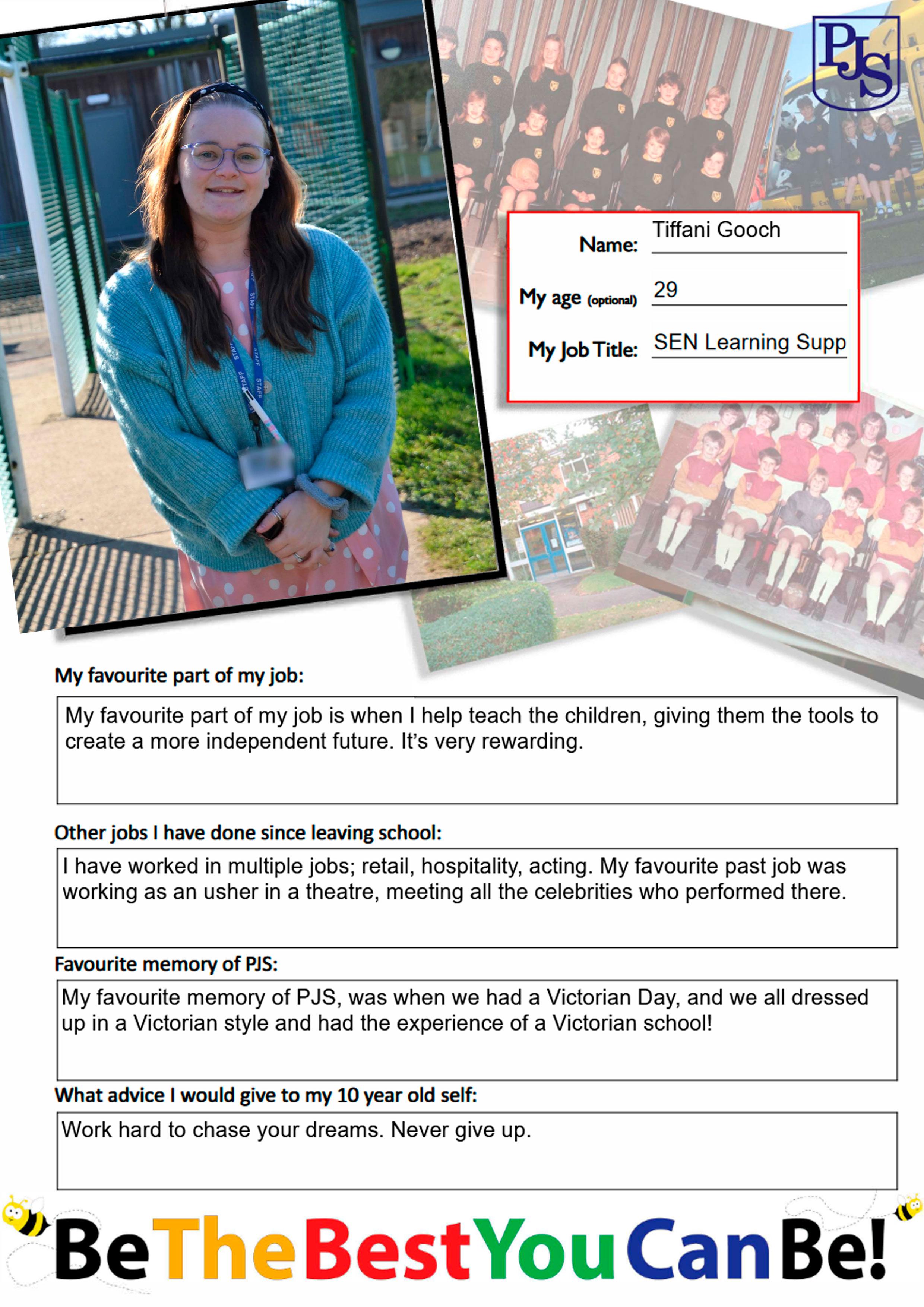We would like to be able to share with our children all of the great career pathways that our PJS leavers have taken,  opening world of possibilities to them and building their aspirations for the future.