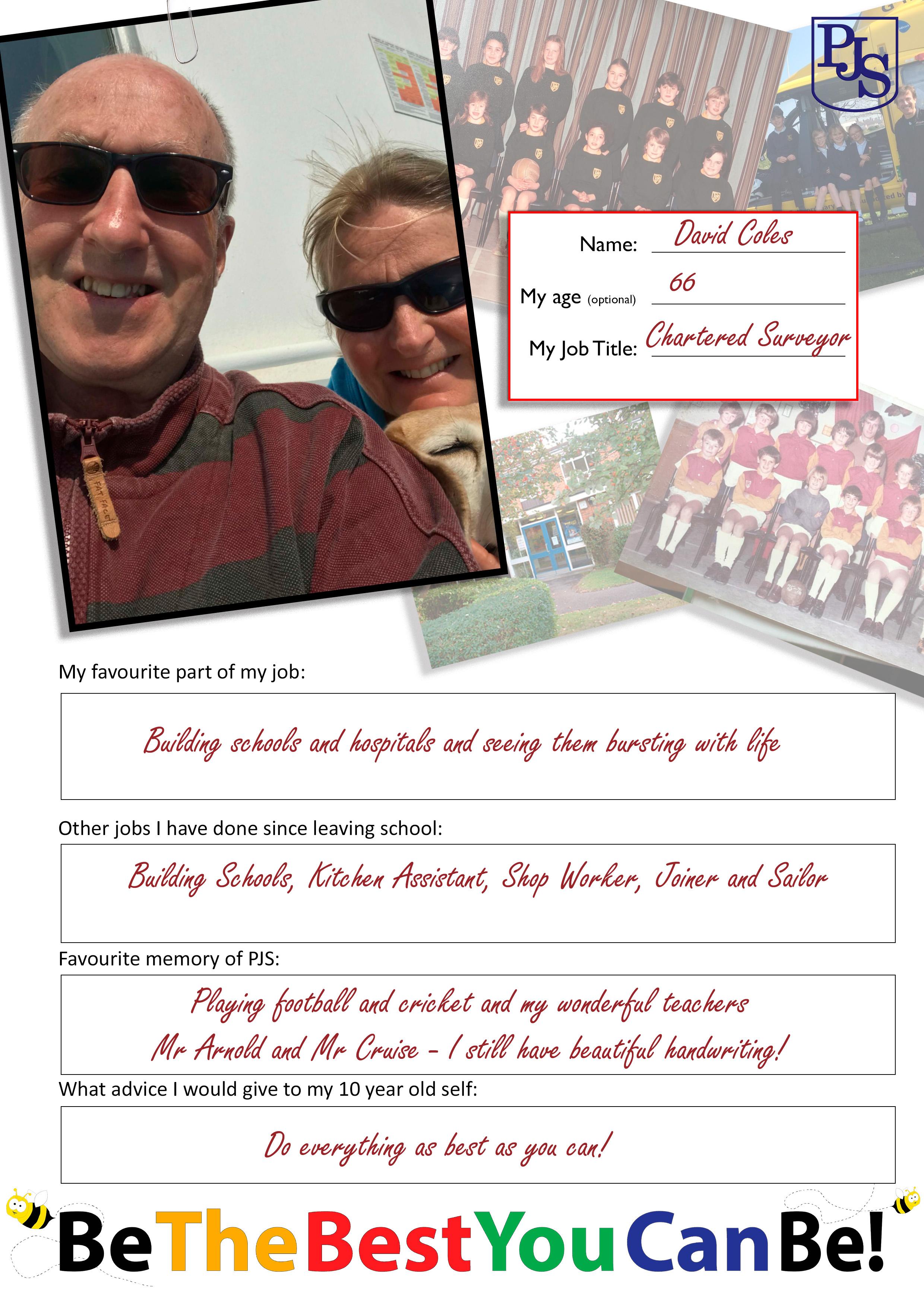 We would love to hear what you are doing now.  At PJS, we would like to know what job you have gone on to do since leaving school and to find out a little bit more about what it involves.  No job is too big or too small!